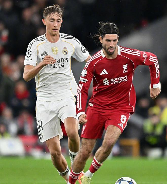 皇馬可以說是利物浦歐戰(zhàn)的苦主,雙方11次直接對話,銀河戰(zhàn)艦取得了7勝1平3負(fù)的壓倒性優(yōu)勢,不過上賽季第一階段的強強對話中,利物浦2-0笑到了最后,渴望延續(xù)強勢發(fā)揮的斯洛特,此役沿用了4231的陣型,馬馬爾達(dá)什維利出任首發(fā)門將,羅伯遜、范迪克、科納特和布拉德利構(gòu)筑后防,雙后腰則是麥卡利斯特和赫拉芬貝赫,維爾茨、索博斯洛伊和薩拉赫坐鎮(zhèn)中場,單箭頭則是?;倏?。