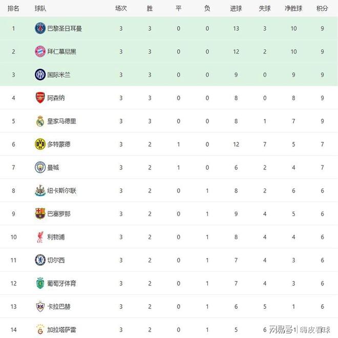 看看積分榜,巴黎圣日耳曼、拜仁慕尼黑、國(guó)際米蘭、阿森納和皇家馬德里,5支球隊(duì)全勝,達(dá)到16分的話,剩余5場(chǎng)比賽只要2勝1平就可以了。從賽程來看,阿森納剩余對(duì)手是最弱的,只有拜仁和國(guó)米兩隊(duì)較強(qiáng),加上如日中天的火熱狀態(tài),阿森納進(jìn)入前八理應(yīng)沒有問題?;蜀R和拜仁的對(duì)手次之,以兩隊(duì)在聯(lián)賽的發(fā)揮來看,贏下三場(chǎng)難度應(yīng)該不大。